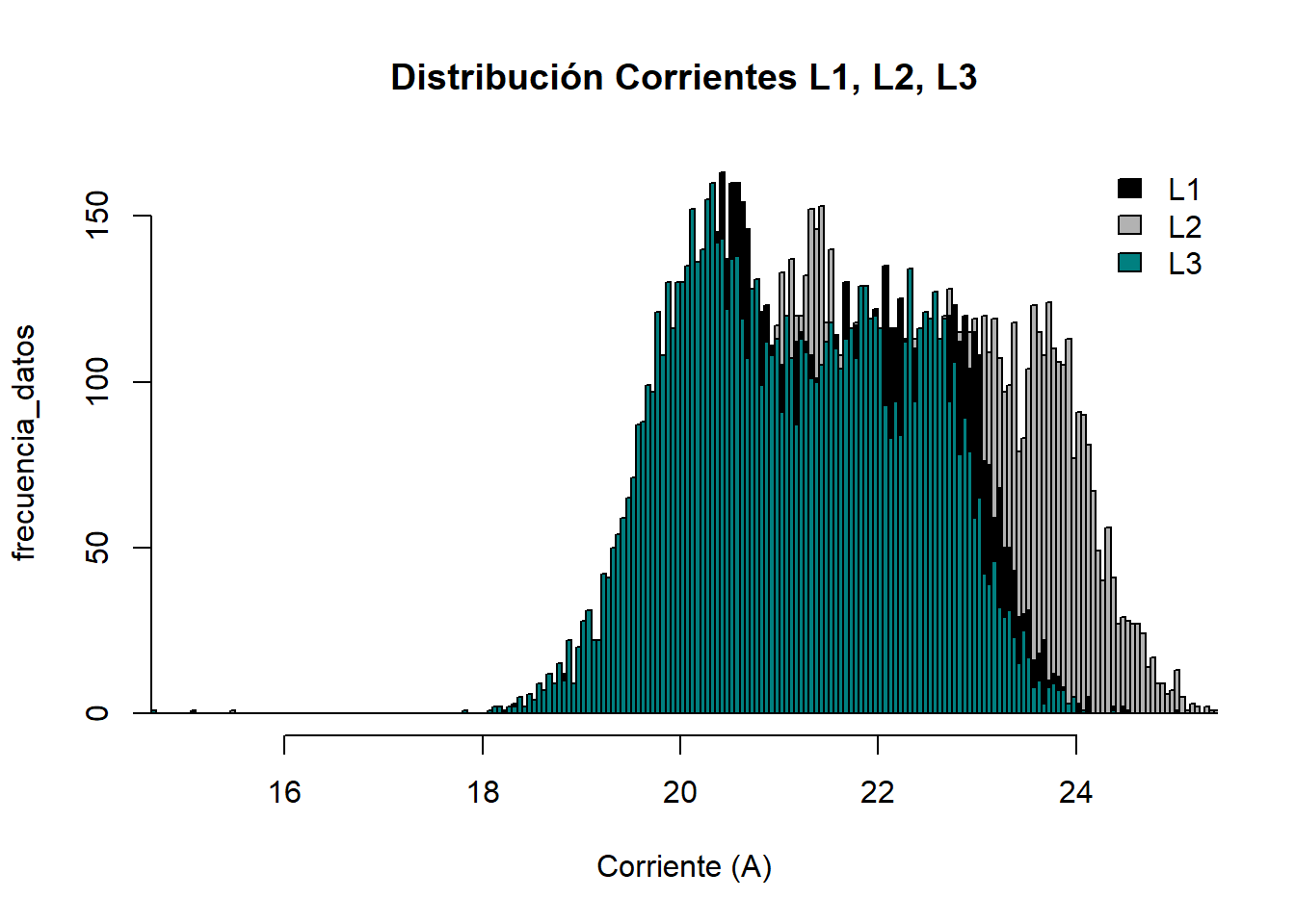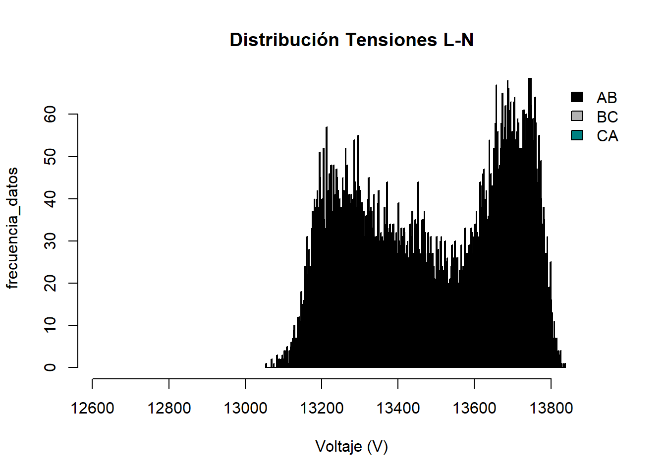 El comportamiento oscilatorio observado en la tensión es de regulación de tensión, esto es, todos los días alrededor de las 2 a.m. presenta el voltaje más alto (aprox. 23.9 kV), a partir de esa hora tiende a bajar llegando a un voltaje mínimo (aprox. 22.69 kV) alrededor de las 2 p.m. y a partir de ahí sube hasta las 2 a.m., siguiendo este comportamiento todos los días del mes.